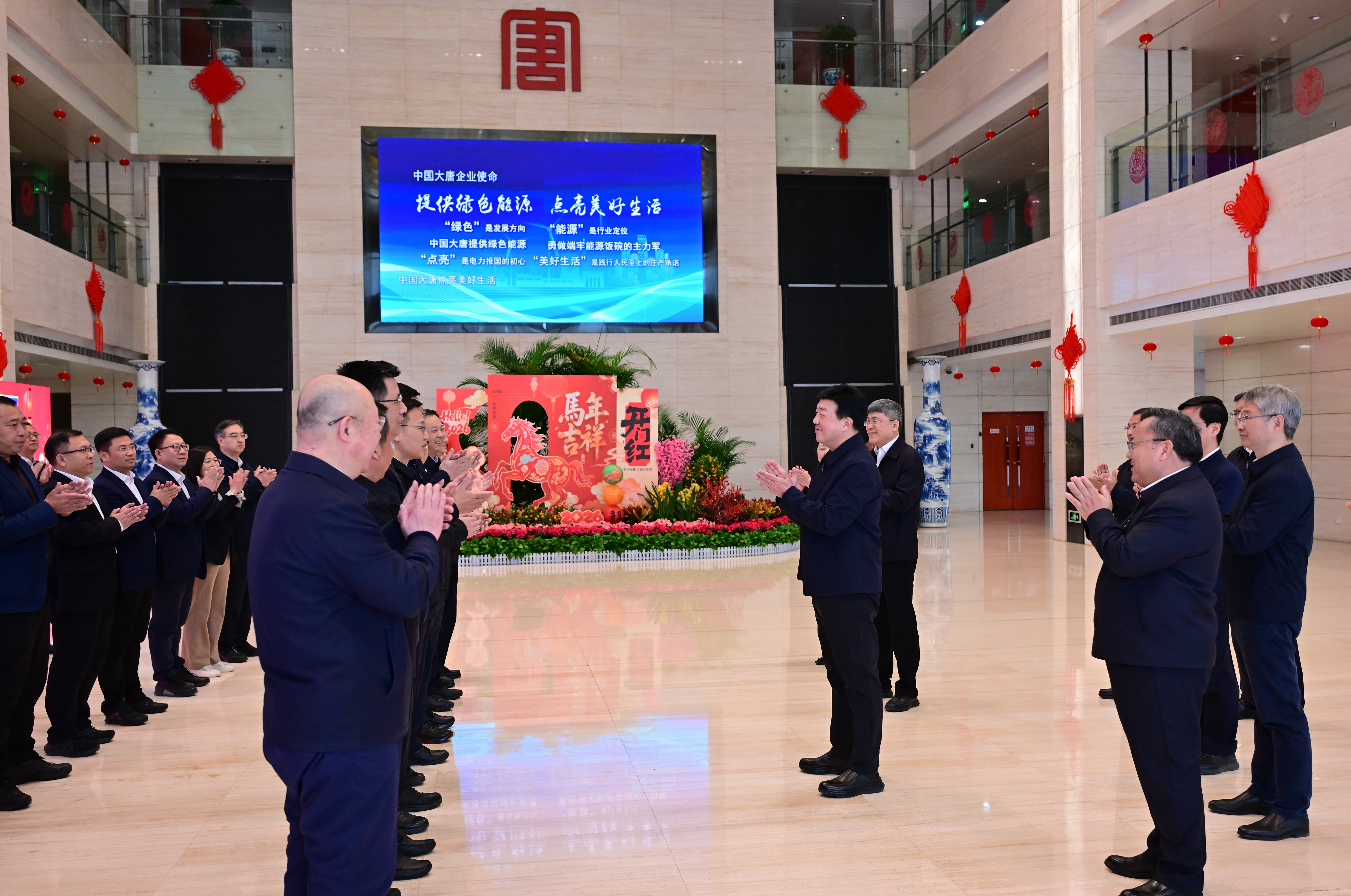 春回大地,骏马奔腾。2月24日,农历马年春节假期后首个工作日,中国大唐集团有限公司党组书记、董事长吕军,董事、总经理、党组副书记李向良和集团公司领导余波、王瑛、陶云鹏、苟伟、李建伟、李霄飞、赵建军一行,到总部各部门及大唐国际、核电公司、数智中心看望慰问返岗干部职工,并向大家致以新春佳节的美好祝福与鼓励。